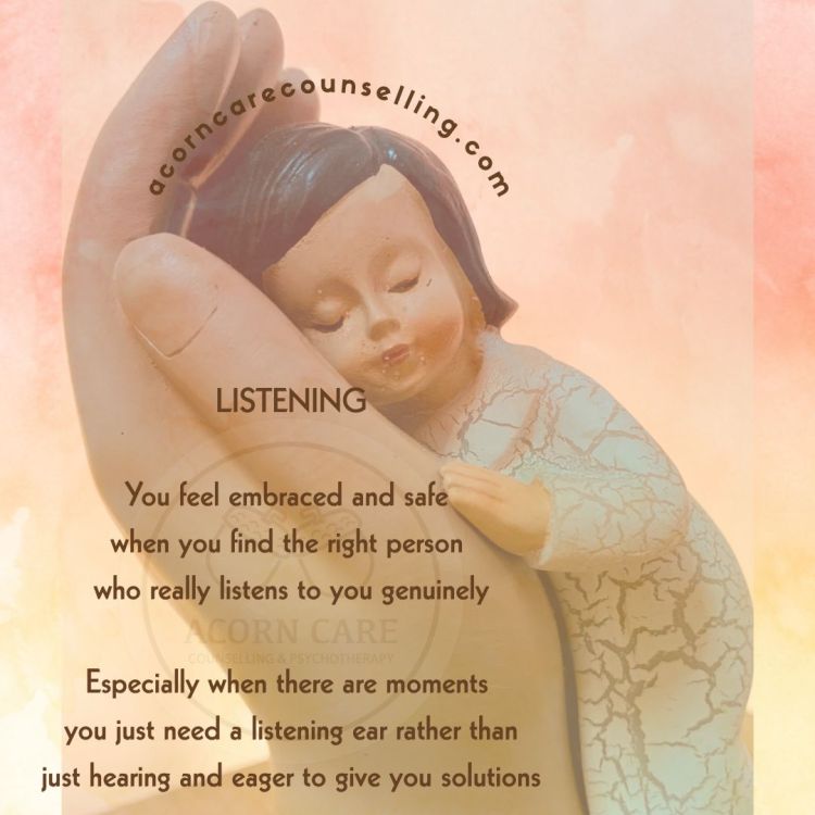 At Acorn Care: Sherry (click on link below for more info) is a sincere and fun-loving professional counsellor who cares for you genuinely and she ensures to provide a safe and protected space for you to feel comfortable to share about your stories.